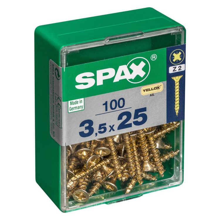 Lot de 100 vis acier tête fraisée pozidriv SPAX, Diam.3.5 mm x L.25 mm