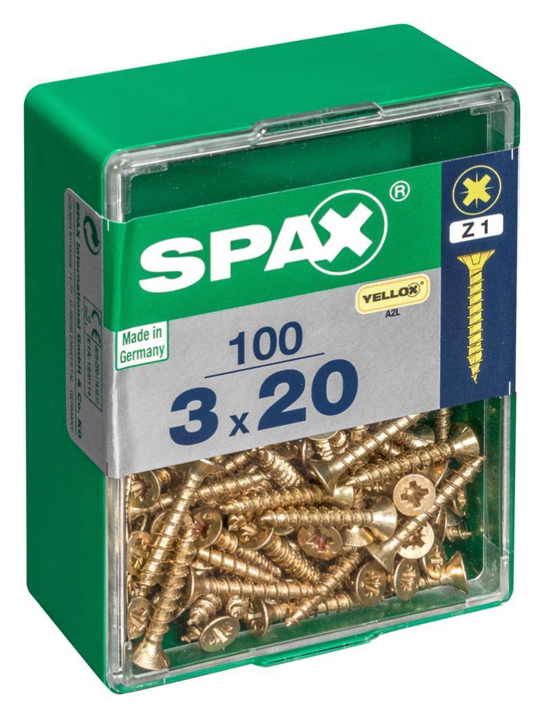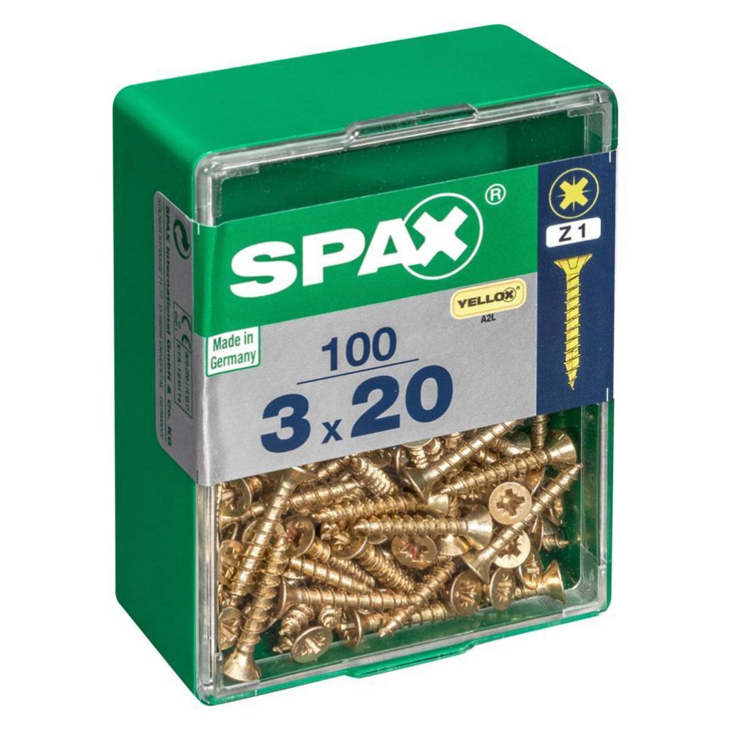 Lot de 100 vis acier tête fraisée pozidriv SPAX, Diam.3 mm x L.20 mm