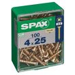 Lot de 100 vis acier tête fraisée pozidriv SPAX, Diam.4 mm x L.25 mm