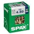 Lot de 100 vis acier tête fraisée pozidriv SPAX, Diam.4 mm x L.50 mm