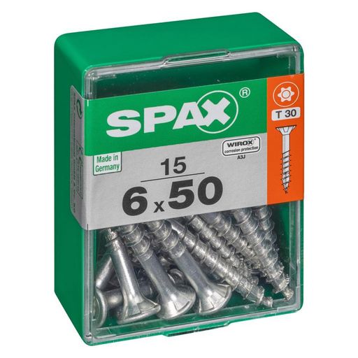 Lot de 15 vis acier tête autofraisée plate SPAX, Diam.6 mm x L.50 mm