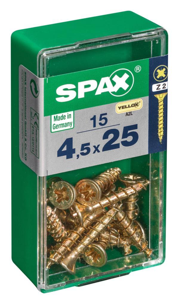 Lot de 15 vis acier tête fraisée pozidriv SPAX, Diam.4.5 mm x L.25 mm