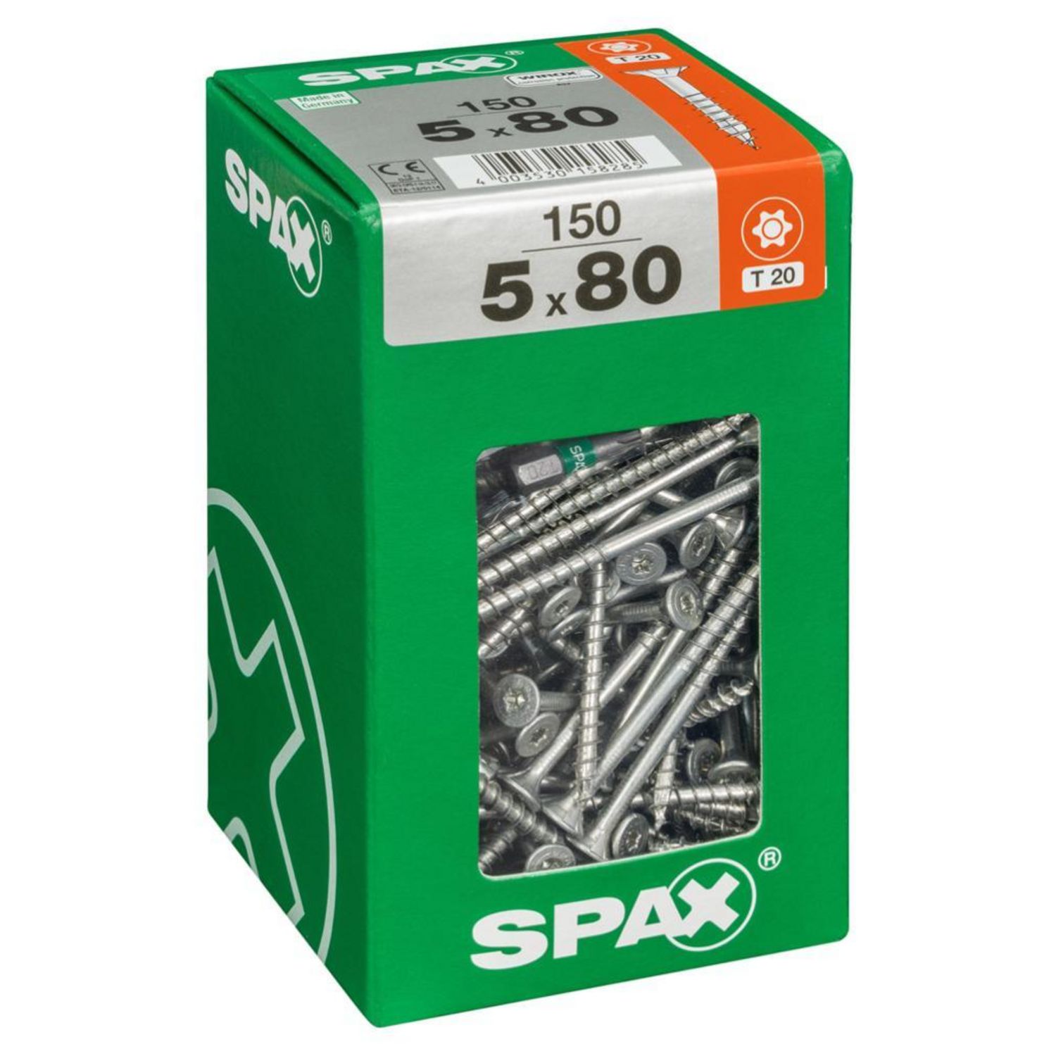 Lot de 150 vis acier tête fraisée torx SPAX, Diam.5 mm x L.80 mm