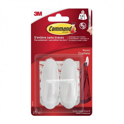 Lot de 2 crochets adhésif Plastique design, COMMAND, blanc 1.3 kg