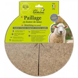 - Usage du produit: Lot de 2 disques de paillage en feutre de laine, Ø 30 cm - 600 grs / m². Très efficace pour conserver l'humidité dans le sol , éviter les mauvaises herbes et protéger les racines du gel. A la fois très isolant et très respirant , il a une durée de vie de 36 mois à 48 mois.