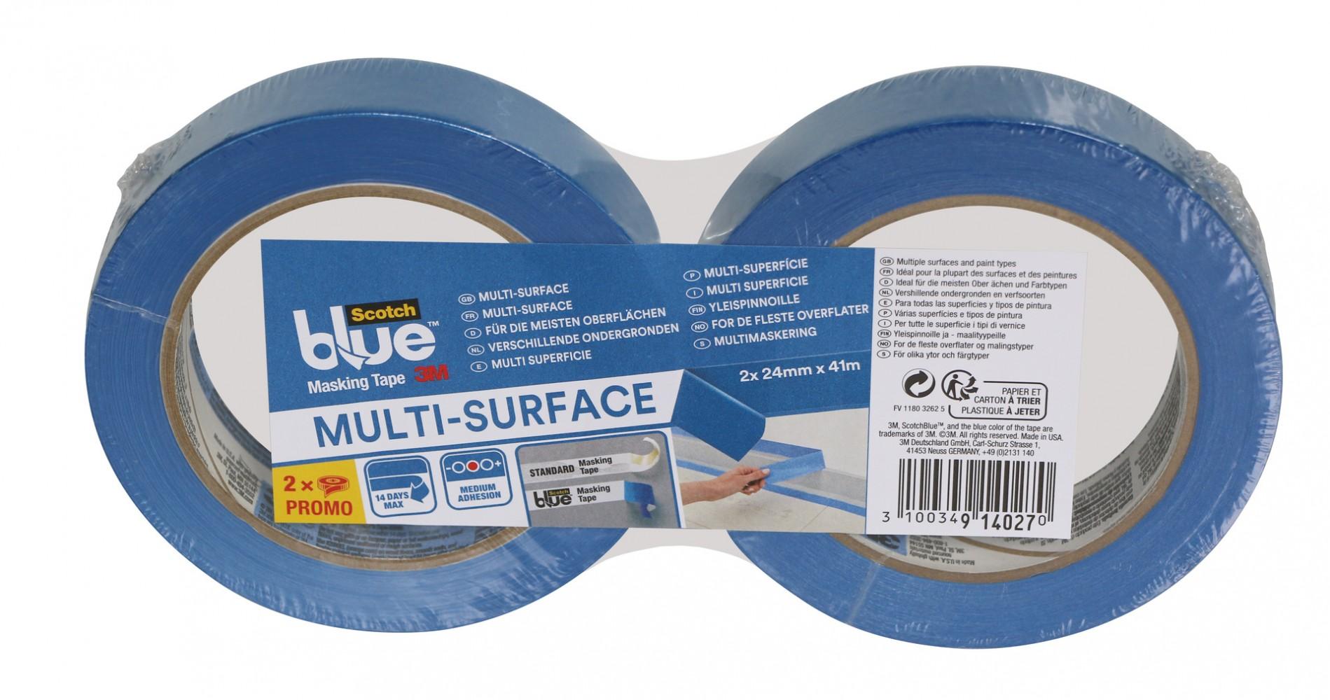 Le lot de 2 Rubans de masquage premium Multi-Surfaces ScotchBlue™ est constitué de 2 rubans ScotchBlue™ de haute qualité pour une adhésion et des résultats de qualité professionnelle à l'intérieur comme à l'extérieur. Le ruban de masquage premium Multi-Surfaces ScotchBlue™ permet d'obtenir des résultats de qualité professionnelle sur la plupart des surfaces intérieures et extérieures. Ce ruban adhésif polyvalent à adhésion moyenne est idéal pour une utilisation intensive sur de multiples surfaces, y compris les murs, les plafonds, le métal, le bois et le verre. Résistant aux UV, il peut être appliqué en plein soleil sans risque de traces de colle jusqu'à 14 jours après son application. 2 rouleaux qui mesure chacun 24 mm x 41 m