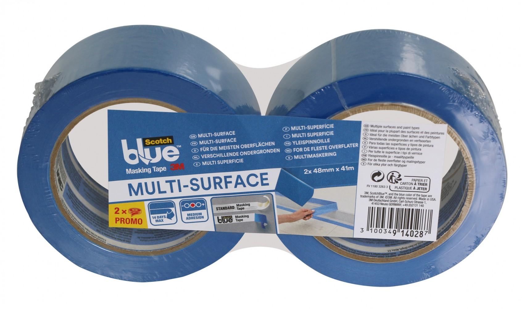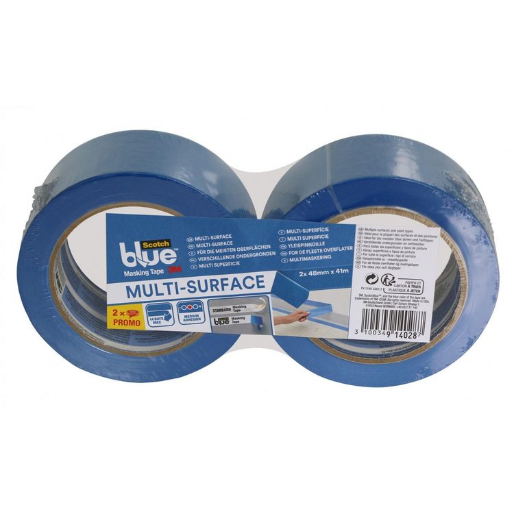 Le lot de 2 Rubans de masquage premium Multi-Surfaces ScotchBlue™ est constitué de 2 rubans ScotchBlue™ de haute qualité pour une adhésion et des résultats de qualité professionnelle à l'intérieur comme à l'extérieur. Le ruban de masquage premium Multi-Surfaces ScotchBlue™ permet d'obtenir des résultats de qualité professionnelle sur la plupart des surfaces intérieures et extérieures. Ce ruban adhésif polyvalent à adhésion moyenne est idéal pour une utilisation intensive sur de multiples surfaces, y compris les murs, les plafonds, le métal, le bois et le verre. Résistant aux UV, il peut être appliqué en plein soleil sans risque de traces de colle jusqu'à 14 jours après son application. 2 rouleaux qui mesure chacun 48 mm x 41 m
