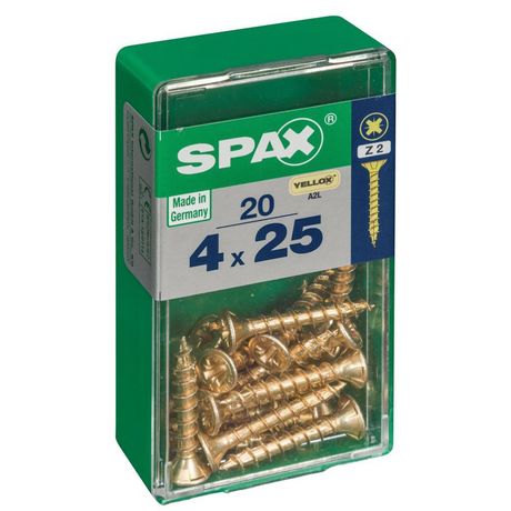 Lot de 20 vis acier tête fraisée pozidriv SPAX, Diam.4 mm x L.25 mm