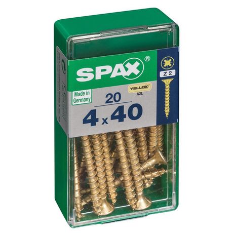 Lot de 20 vis acier tête fraisée pozidriv SPAX, Diam.4 mm x L.40 mm