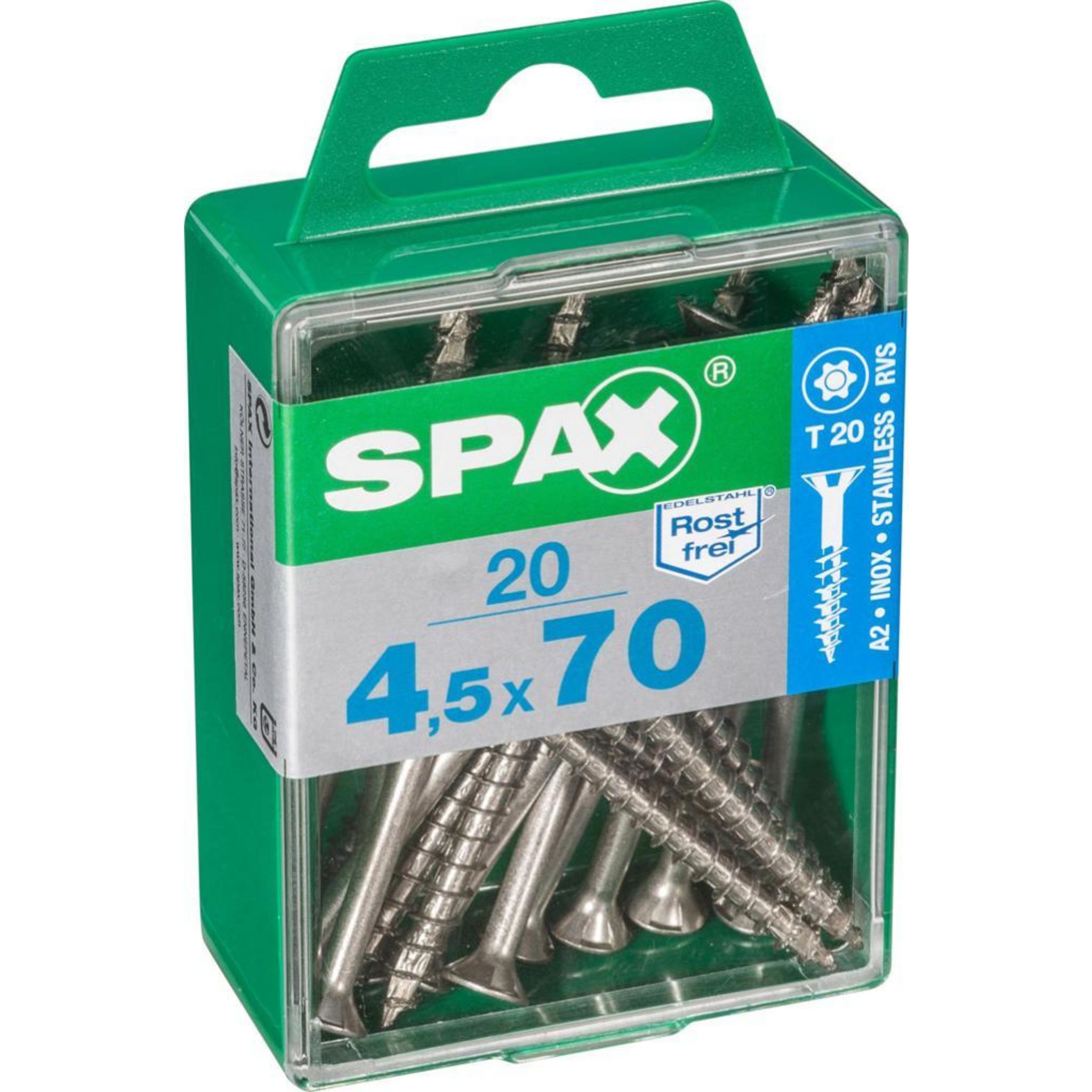 Lot de 20 vis inox tête fraisée torx SPAX, Diam.4.5 mm x L.70 mm