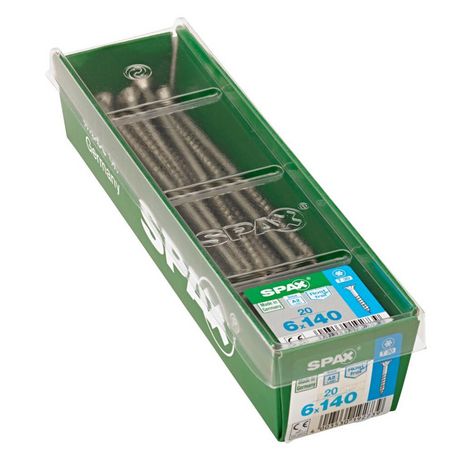 Lot de 20 vis inox tête fraisée torx SPAX, Diam.6 mm x L.140 mm