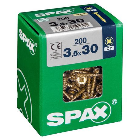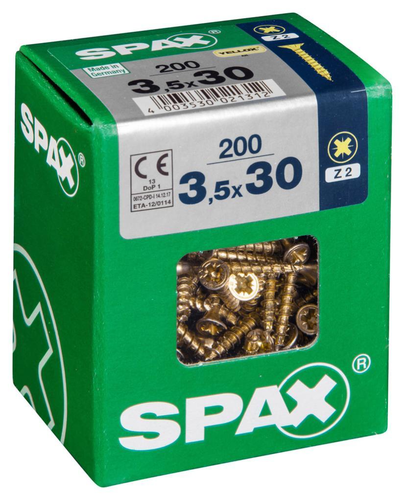 Lot de 200 vis acier tête fraisée pozidriv SPAX, Diam.3.5 mm x L.30 mm