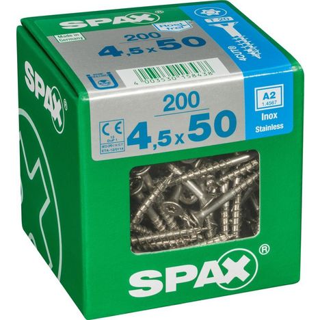 Lot de 200 vis inox tête fraisée torx SPAX, Diam.4.5 mm x L.50 mm