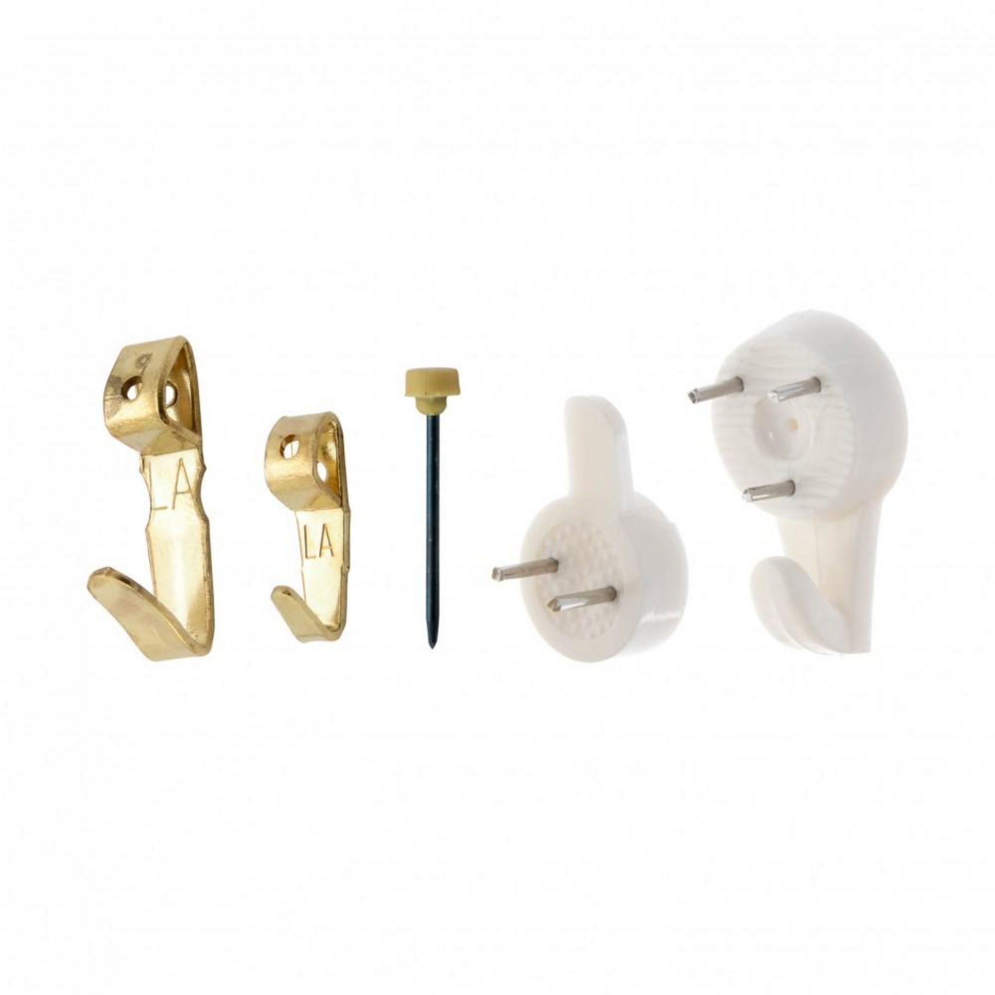 - Composition du kit: 7 crochets acier n° 0 (jusqu'à 4 kg) de dimension l0,5xP0,7xH1,7 cm + 7 crochets acier n° 1 (jusqu'à 8 kg) de dimension l0,6xP1,0xH2,5 cm + 14 aiguilles + 4 crochets béton n° 1 (jusqu'à 4 kg) de dimension l1,4xP0,8xH2,2 cm + 4 crochets béton n°2 (jusqu'à 8 kg) de dimension l1,8xP0,9xH2,9 cm