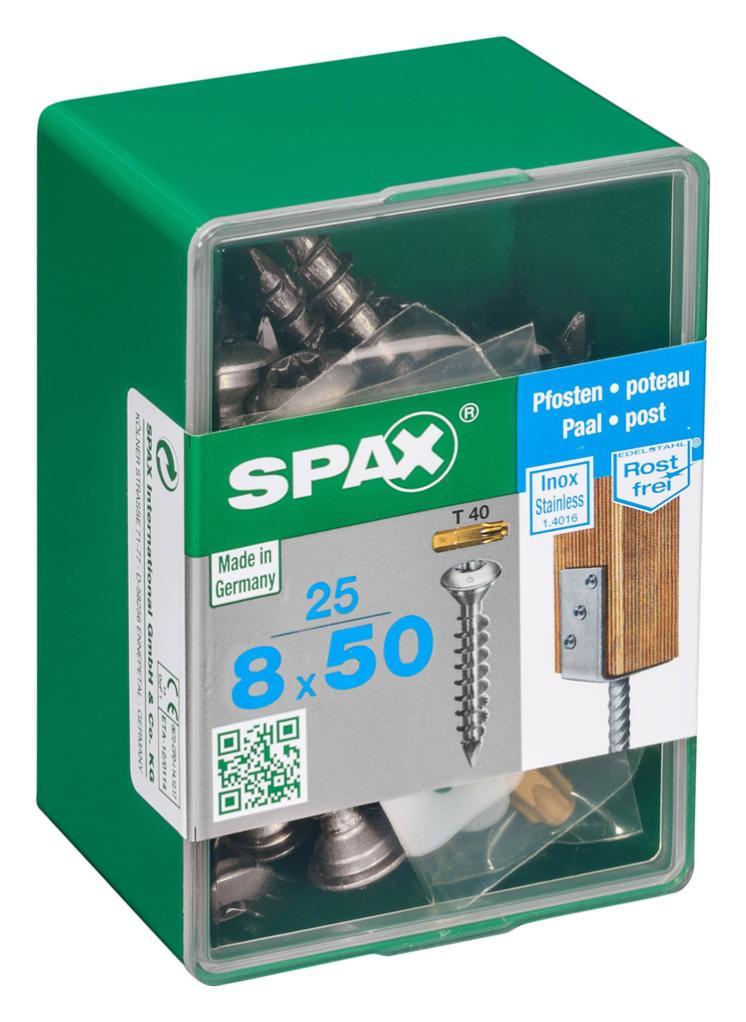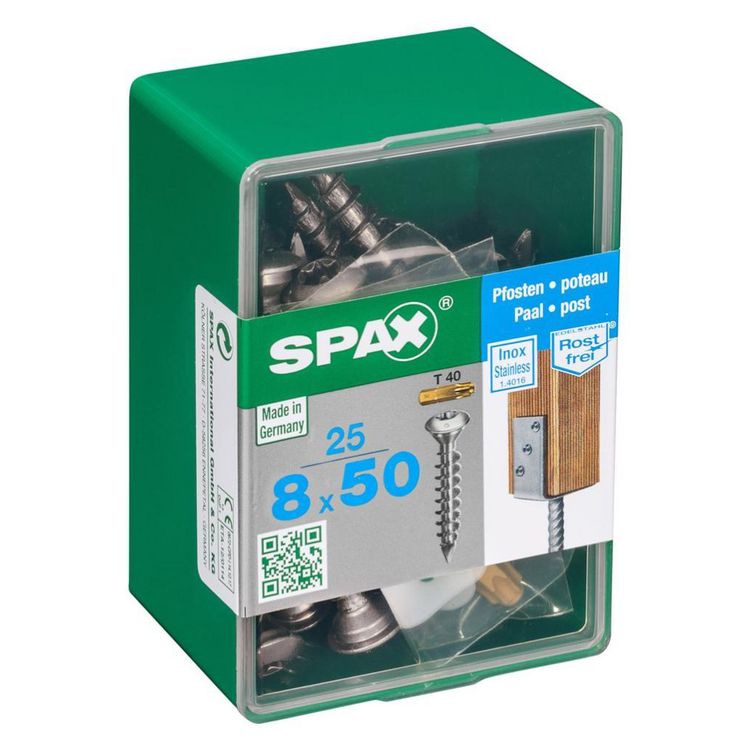 Lot de 25 vis inox tête fraisée bombée torx SPAX, Diam.8 mm x L.50 mm