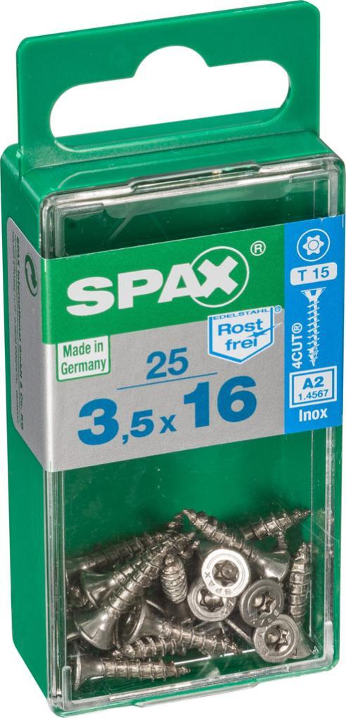 Lot de 25 vis inox tête fraisée torx SPAX, Diam.3.5 mm x L.16 mm