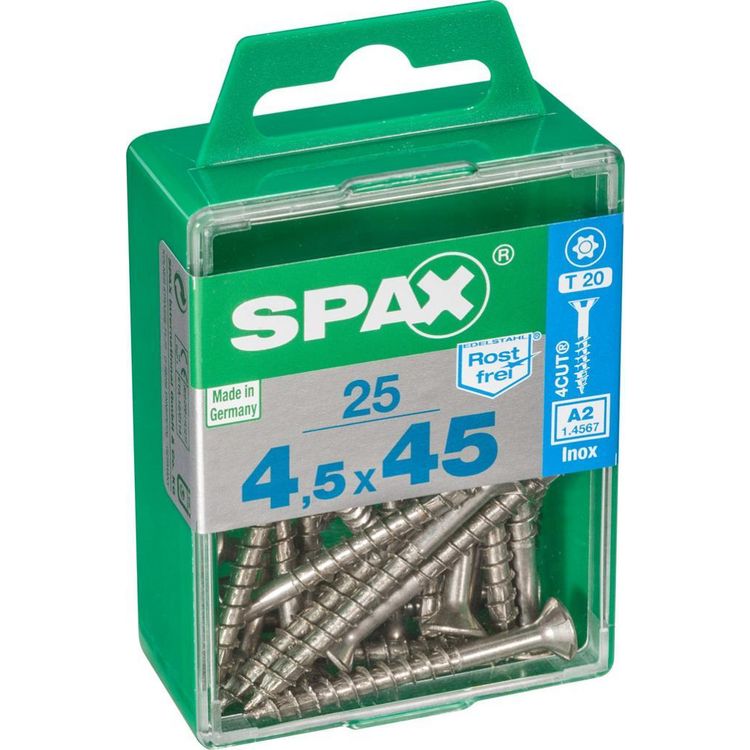 Lot de 25 vis inox tête fraisée torx SPAX, Diam.4.5 mm x L.45 mm