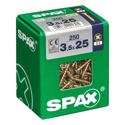 Lot de 250 vis acier tête fraisée pozidriv SPAX, Diam.3.5 mm x L.25 mm