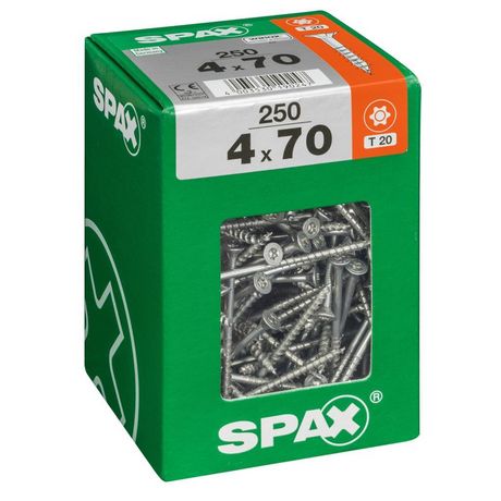 Lot de 250 vis acier tête fraisée torx SPAX, Diam.4 mm x L.70 mm