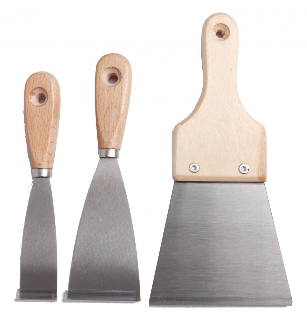 Largeur de la lame (en cm): 10Longueur de la lame (en cm): De 17 à 21Matière de la lame: AcierMatière du manche: BoisMatière principale: AcierMode de nettoyage: Nettoyage des outils à l'eauNombre de lames: 3Support de destination: Plaques de plâtre (rebouchage, garnissant)Type de lame: AcierUsage du