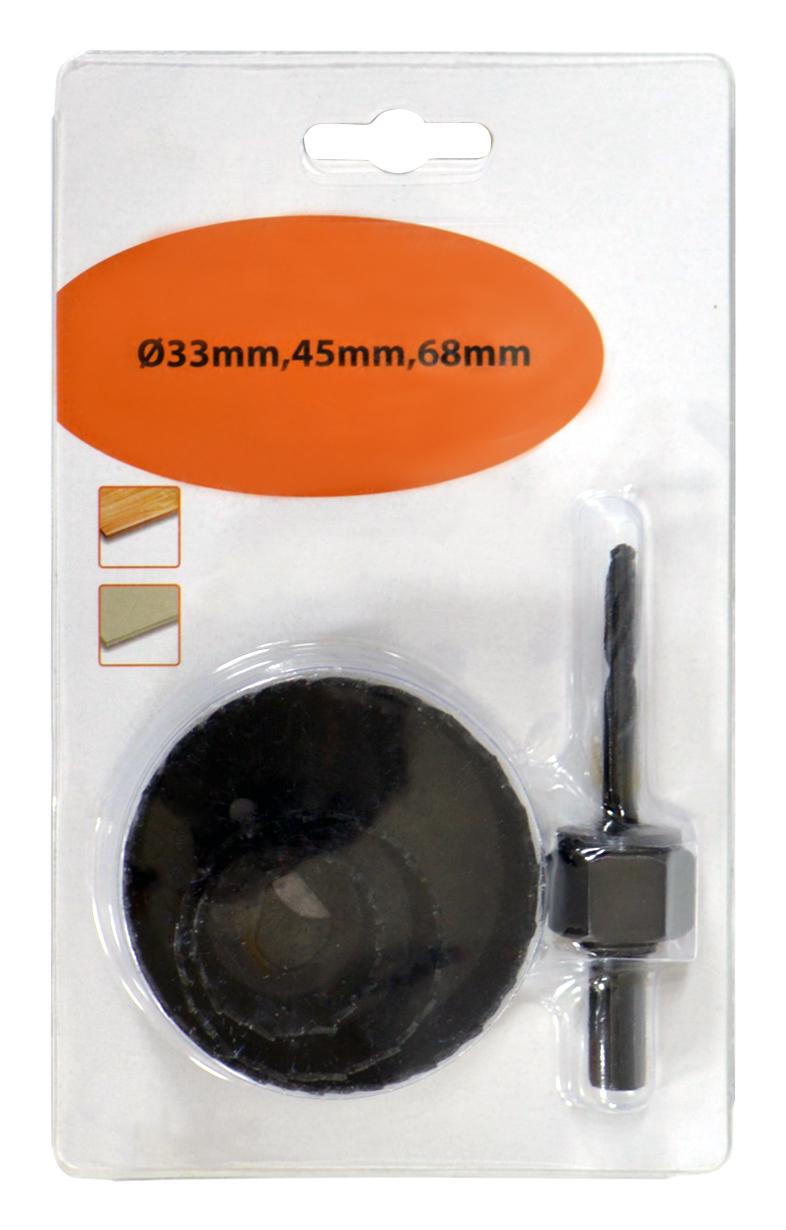 Lot de 3 scies cloches bois, Diam.33, 45 et 68 mm