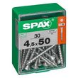 Lot de 30 vis acier tête autofraisée plate SPAX, Diam.4.5 mm x L.50 mm