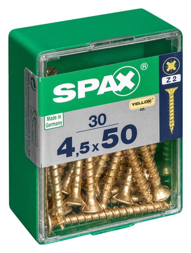 Lot de 30 vis acier tête fraisée SPAX, Diam.4.5 mm x L.50 mm