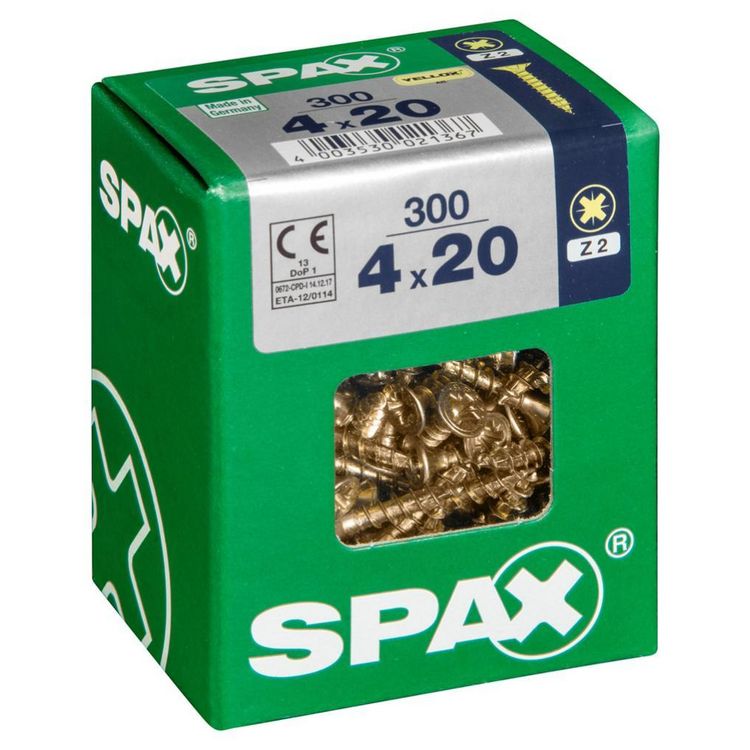 Lot de 300 vis acier tête fraisée pozidriv SPAX, Diam.4 mm x L.20 mm