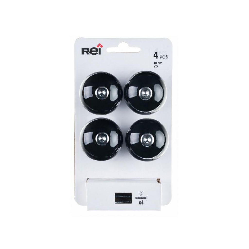 Lot de 4 boutons de meuble Boule noir porcelaine H.38 x l.40 x P.40 mm
