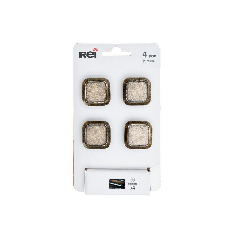 Lot de 4 boutons de meuble Carré zamak laitonné H.22 x l.30 x P.30 mm