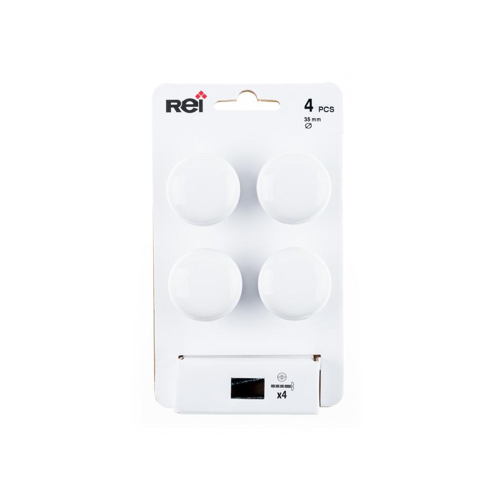 Lot de 4 boutons de meuble Rond porcelaine brillant H.27 x l.35 x P.35 mm