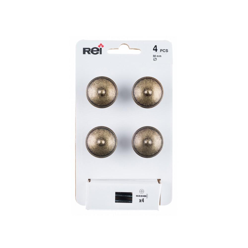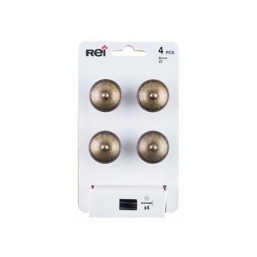 Lot de 4 boutons de meuble Rond zamak laitonné H.22 x l.30 x P.30 mm
