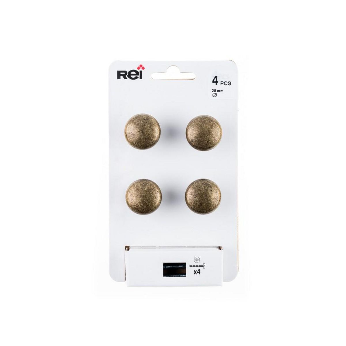 Lot de 4 boutons de meuble Rond zamak laitonné H.25 x l.25 x P.25 mm