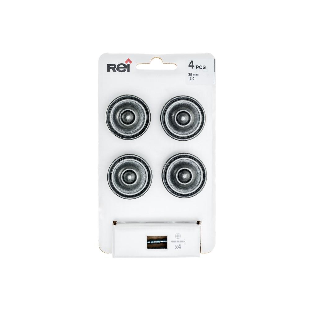 Lot de 4 boutons de meuble Rond zamak vieilli H.26 x l.35 x P.35 mm