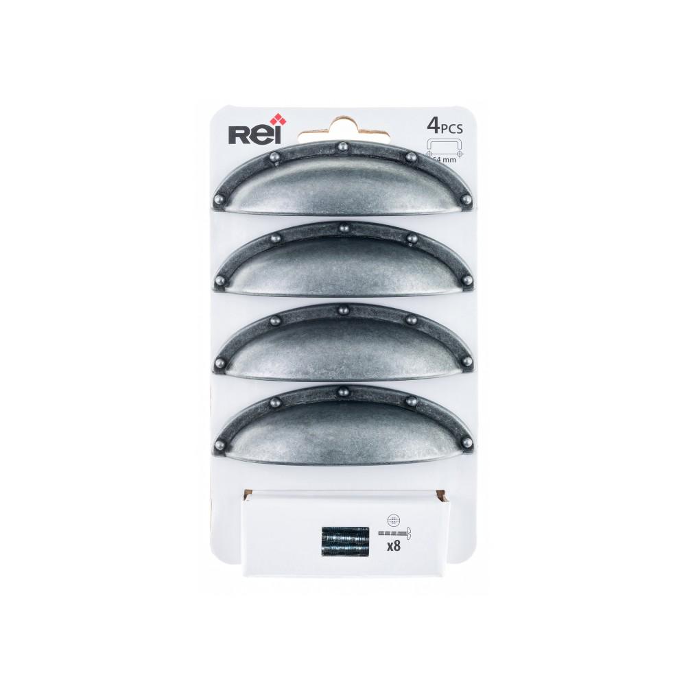 Lot de 4 poignées de meuble entraxe 64 mm zamak vieilli