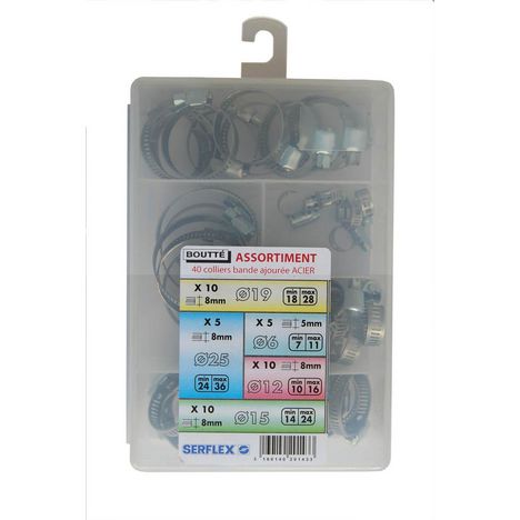 Boîte compartimentée et sectionnée réutilisable. Colliers à bande ajouréeUsage du produit: A serrerType de produit: Bande ajouréeMatière principale: AcierGarantie (en années): 3Poids du produit nu (en kg): 0.43Produit emballé : poids (en kg): 0.43Produit emballé : largeur (en cm): 12.1Produit emball