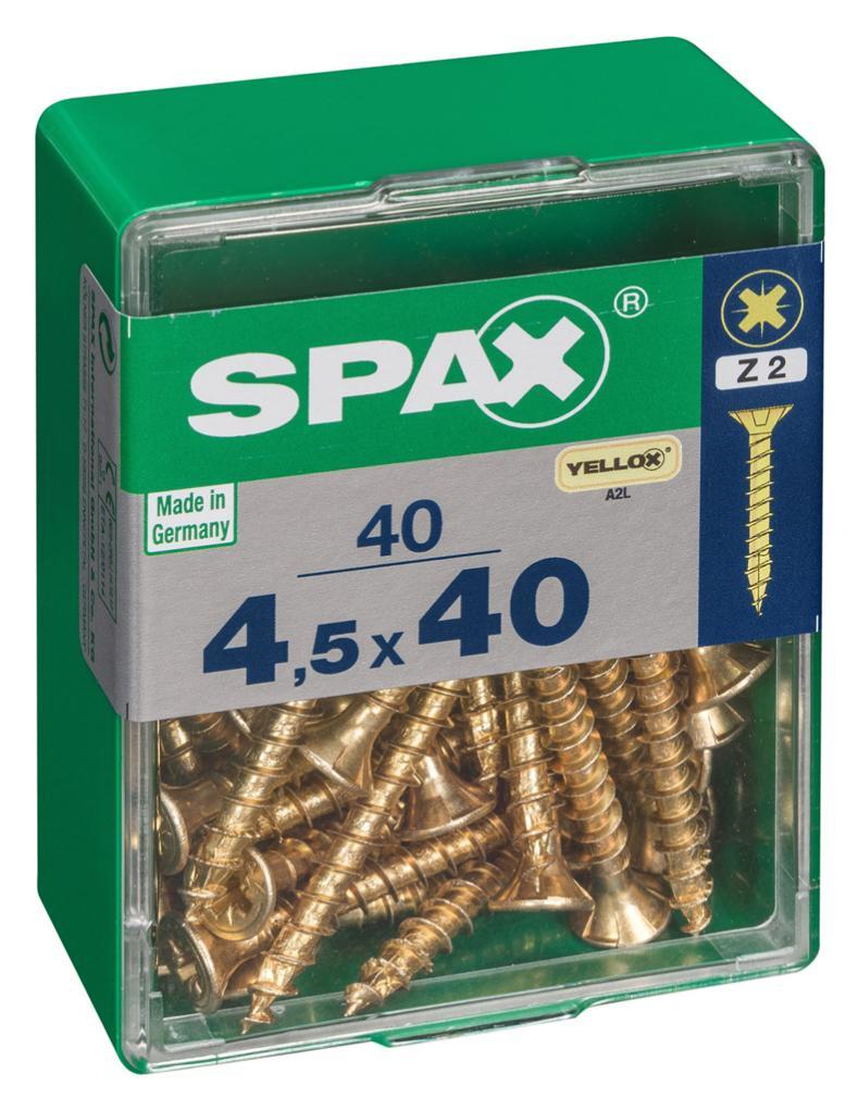 Lot de 40 vis acier tête fraisée pozidriv SPAX, Diam.4.5 mm x L.40 mm