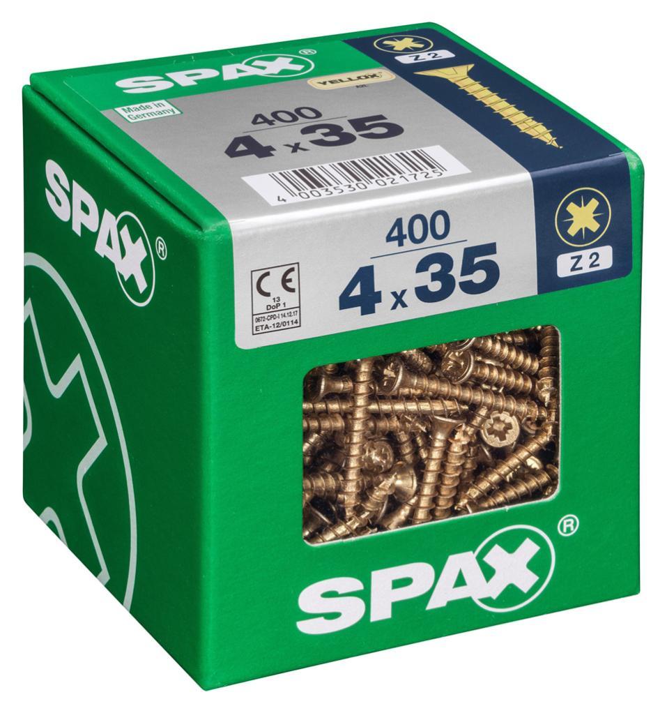 Lot de 400 vis acier tête fraisée pozidriv SPAX, Diam.4 mm x L.35 mm