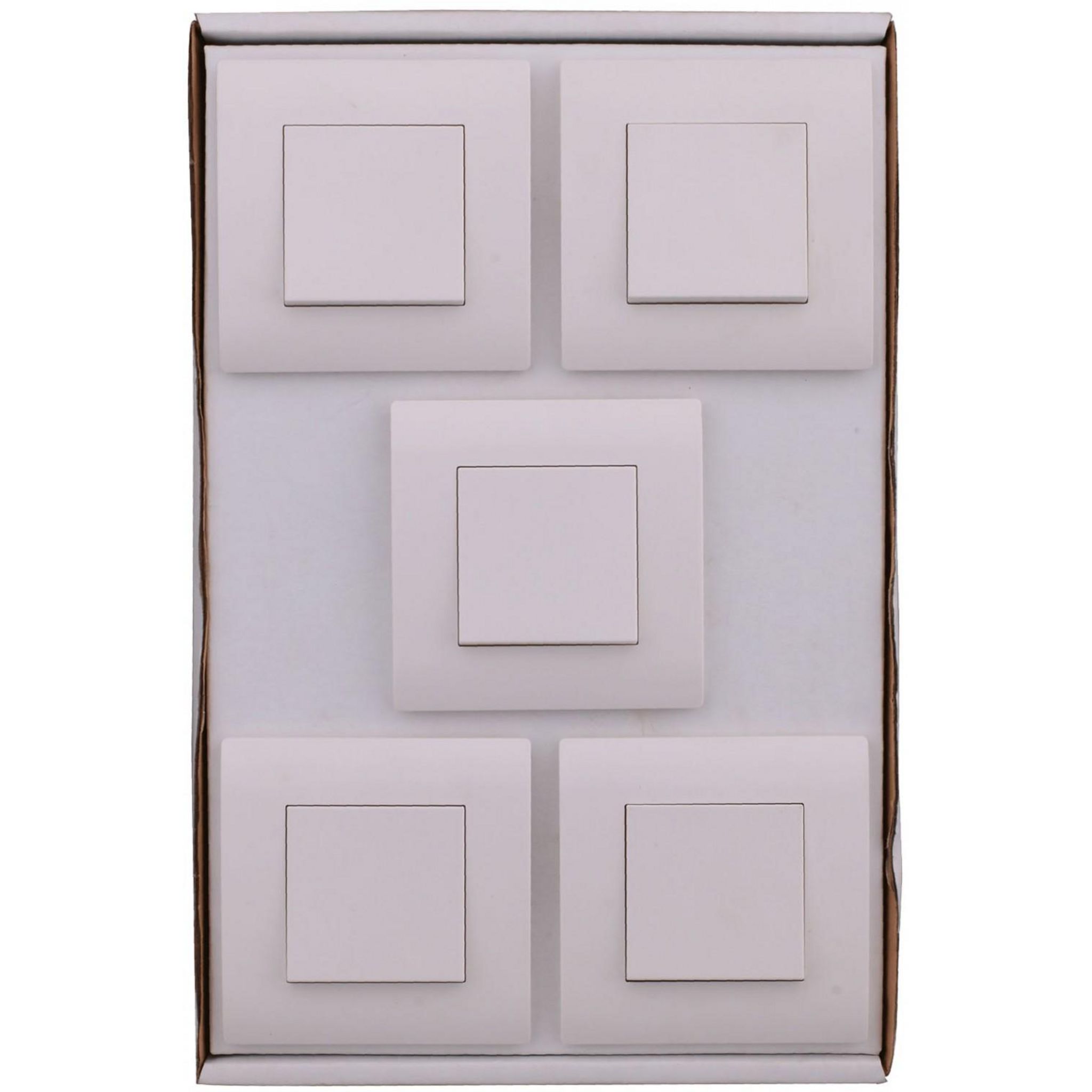 Lot de 5 interrupteurs va-et-vient complet Basic, blanc