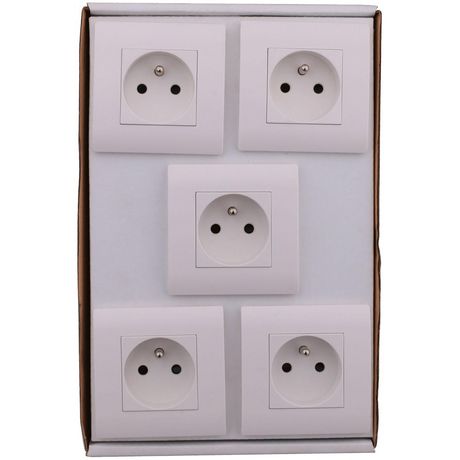 Nom du produit: Lot de 5 prises avec terreNom de la série: MirageType de produit: CompletCouleur: BlancMatière principale: PlastiqueFinition du produit: MatNombre de modules: 1Tension (en V): 250Sécurité enfant: OuiType de fixation: A vis et à griffesHauteur (en mm): 73Largeur (en mm): 73Profondeur