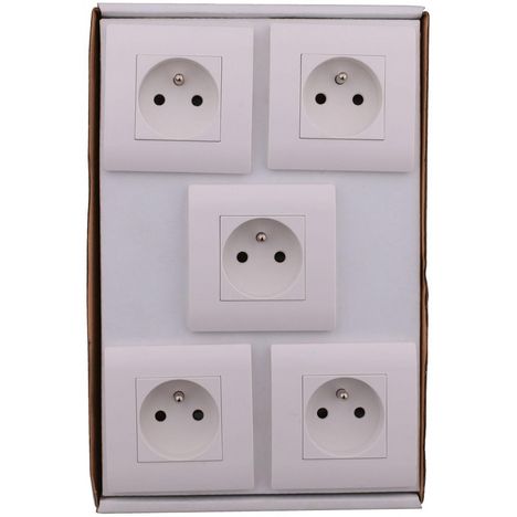 Lot de 5 prises avec terre Chantier, blanc