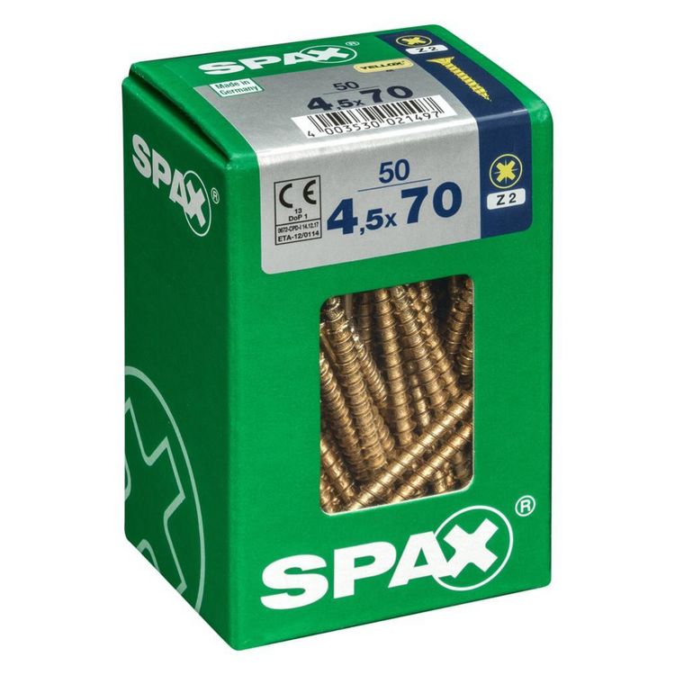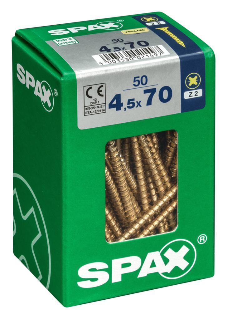 Lot de 50 vis acier tête fraisée pozidriv SPAX, Diam.4.5 mm x L.70 mm
