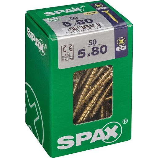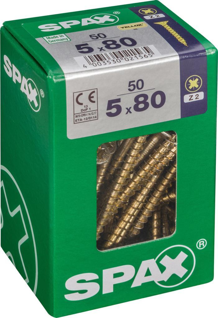 Lot de 50 vis acier tête fraisée pozidriv SPAX, Diam.5 mm x L.80 mm