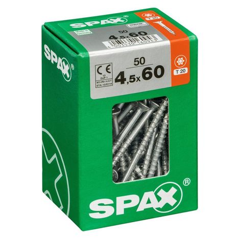 Lot de 50 vis acier tête fraisée torx SPAX, Diam.4.5 mm x L.60 mm