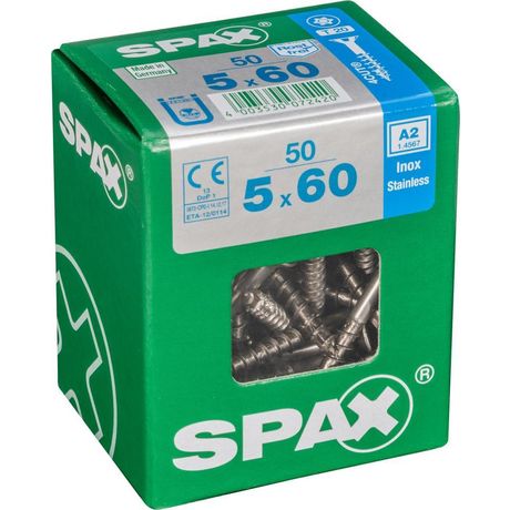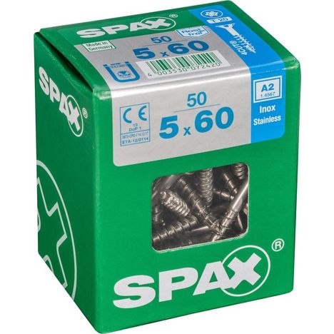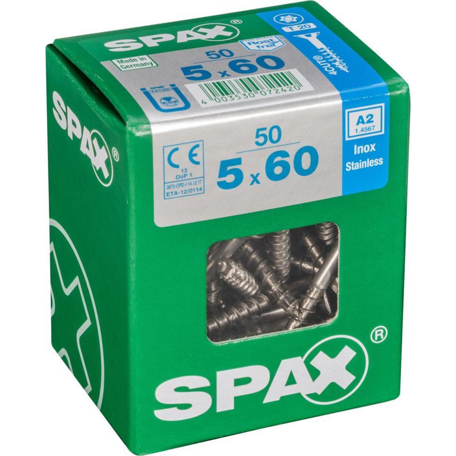 Lot de 50 vis inox tête fraisée torx SPAX, Diam.5 mm x L.60 mm