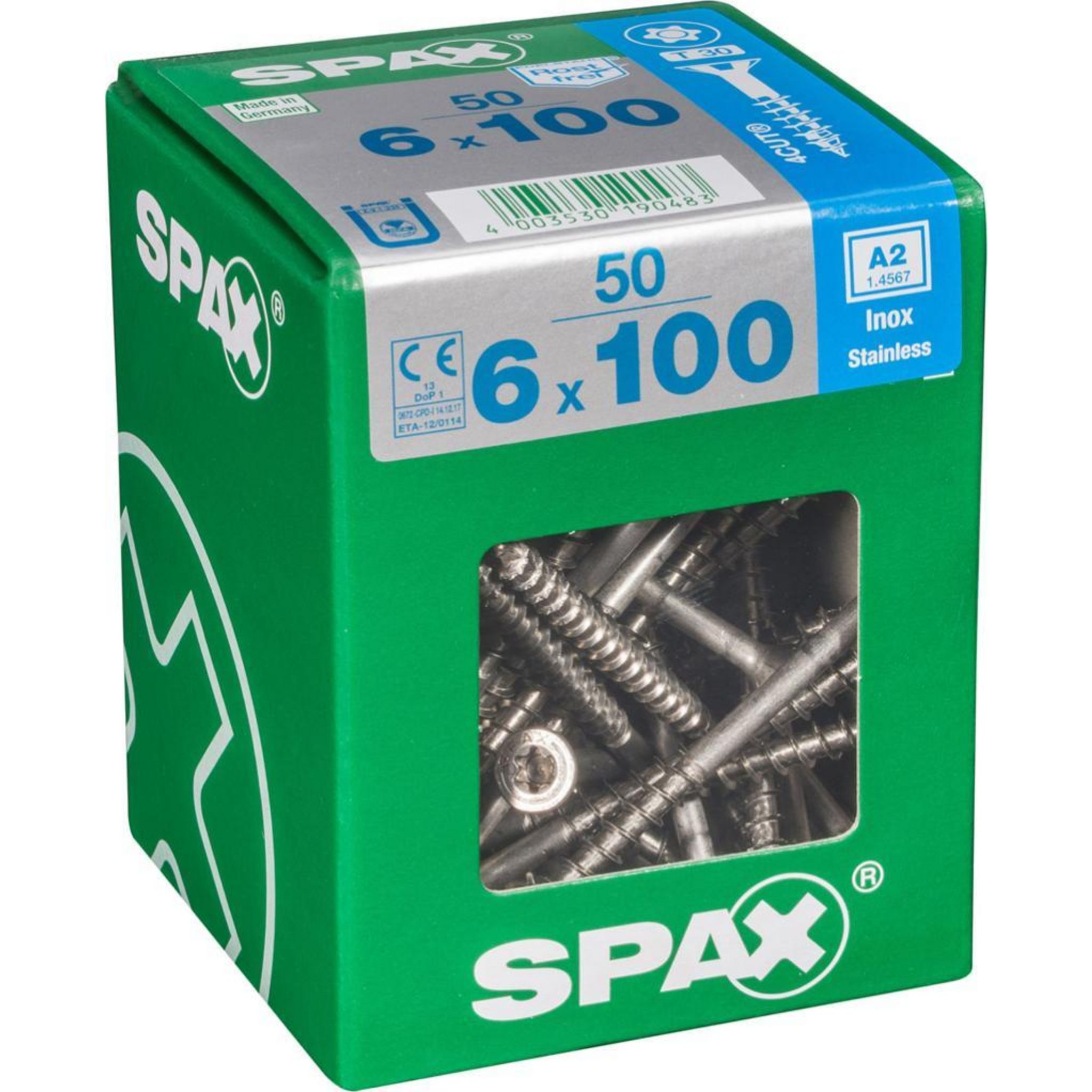 Lot de 50 vis inox tête fraisée torx SPAX, Diam.6 mm x L.100 mm
