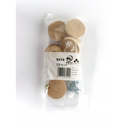 Nom de la série: RondMatière principale: BoisType de bois: Bois massifFinition du produit: BrutCouleur: HêtreType de fixation: A visFixation fournie: OuiVis sécable: NonDiamètre (en mm): 39Profondeur (en mm): 39Hauteur (en mm): 22Largeur (en mm): 39Longueur des vis (en mm): 25