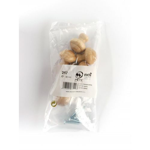Lot de 6 boutons de meuble Rond bois verni H.32 x l.30 x P.30 mm