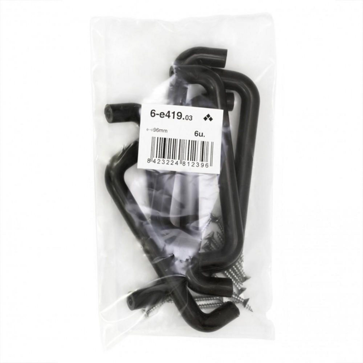 Lot de 6 poignées de meuble plastique mat, entraxe 96 mm