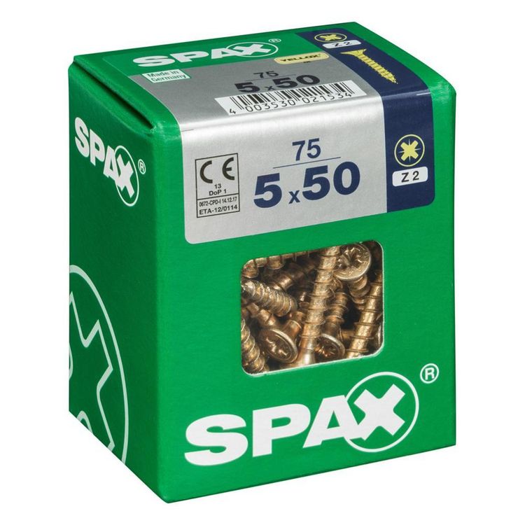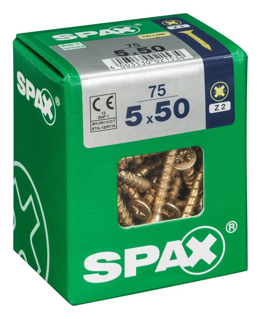 Lot de 75 vis acier tête fraisée pozidriv SPAX, Diam.5 mm x L.50 mm